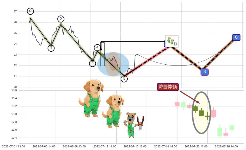 | 2 🅚:上涨两颗星 | 上涨三颗星 ➕ 🌊:波浪理论猜想下跌浪5已形成,猜想后续形成abc反弹上涨(均值回复) ☞ 看多信号 ⇥ 【🅚线】交织【图形】⇥ 综合量化分数: 51 | > |
