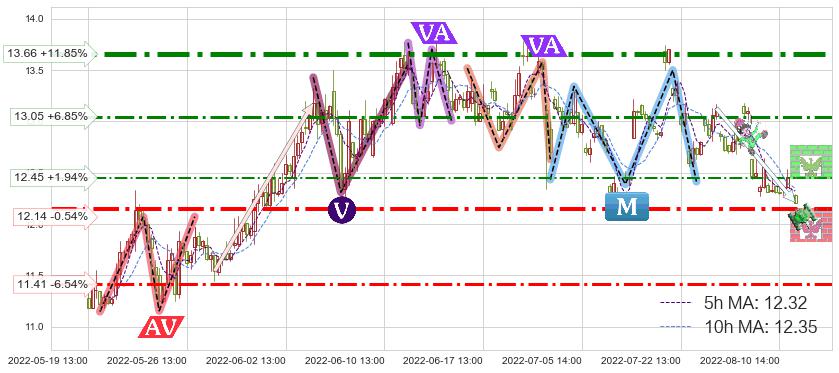 ♘ 阻力价格位13.05,可信任强度67.22%,距离最后交易2022-08-12 14:00形成的收盘价格12.21相差 +6.85%