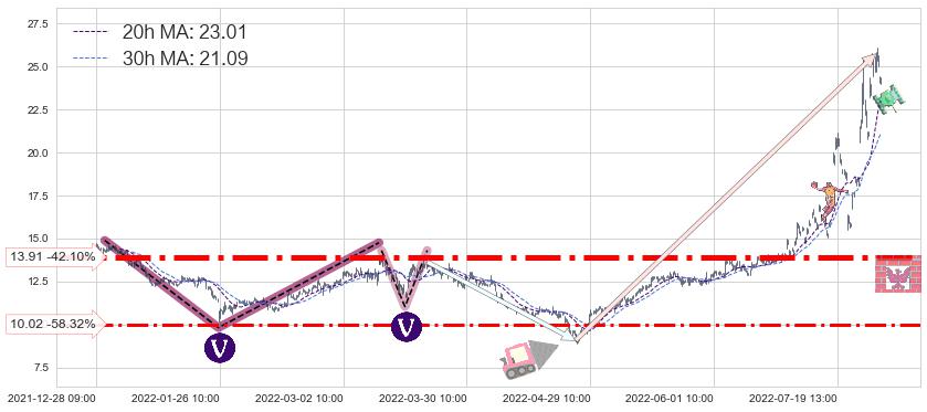 ♞ 20小时均线:23.01,30小时均线:21.09→ 快线>慢线