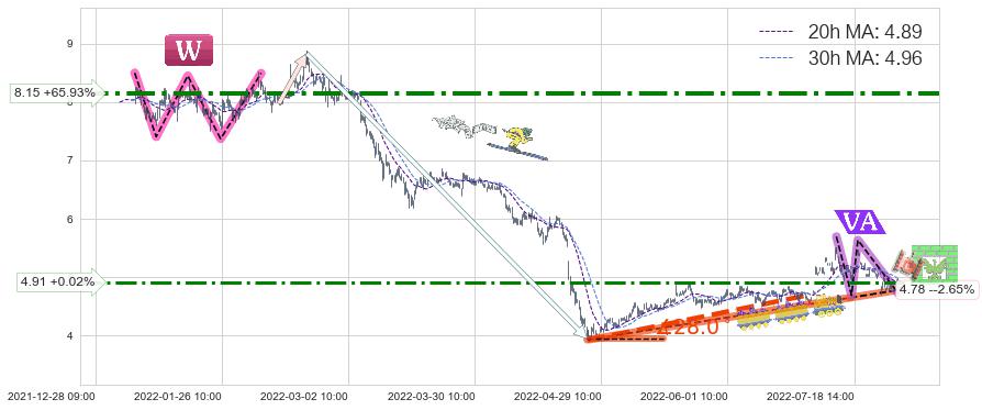 ♘ 阻力价格位4.91,可信任强度59.87%,距离最后交易2022-08-12 14:00形成的收盘价格4.91相差 +0.02%