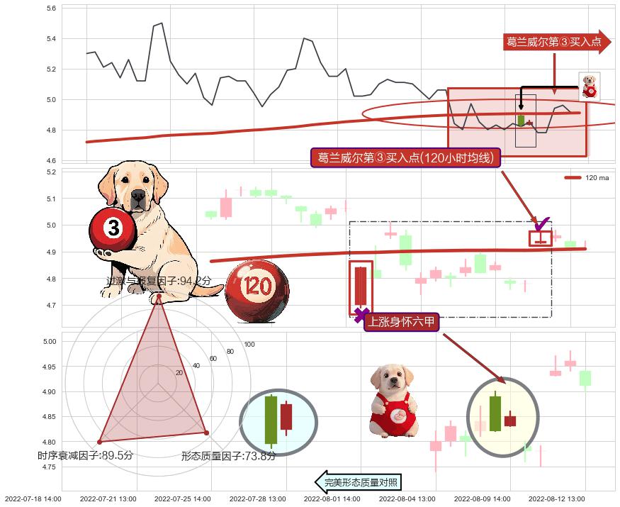 ➢ 收盘价(08-12:13: 4.91 )→回踩→第二根k线低点(08-11:13: 4.93 )