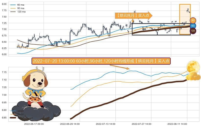 ⚀ 2022-06-27 13:00:00小时-2022-08-12 14:00:00小时显现 60小时-90小时-120小时均线 【烘云托月】买入点 看多信号,后市看涨,买入