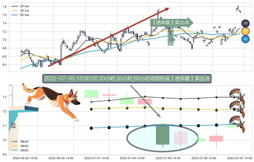 ⚀ 2022-07-05 13:00:00小时显现 20小时-30小时-60小时均线 【绝命跳】卖出点 看空信号,后市看跌,卖出