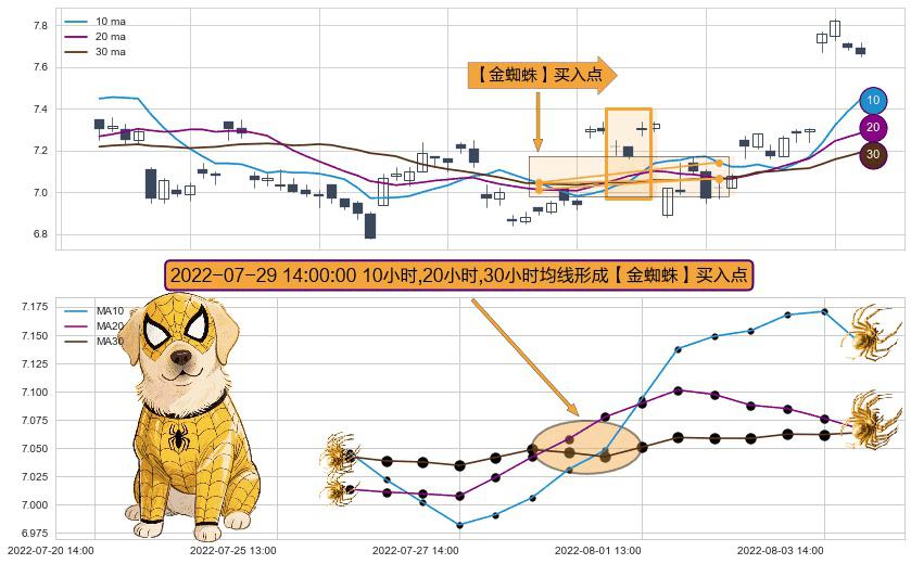 ⚀ 2022-07-29 14:00:00小时显现 10小时-20小时-30小时均线 【金蜘蛛】买入点 看多信号,后市看涨,买入