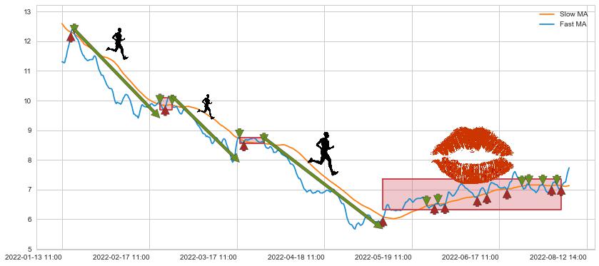 01-18 10:00至02-21 14:00 慢线与快线呈空头排列, 慢线与快线接触少,无缠绕