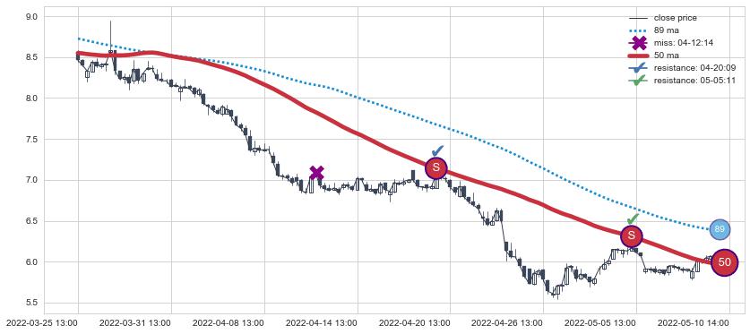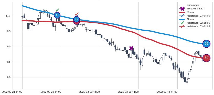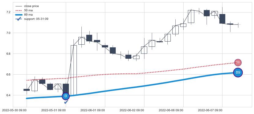 ⚂ 2022-06-14 13:00:00小时突然冒出一根大阳线,一下子顶穿三条均线且收盘价收在各条均线之上