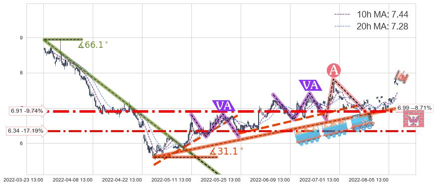 ♞ 10小时均线:7.44,20小时均线:7.28→ 快线>慢线