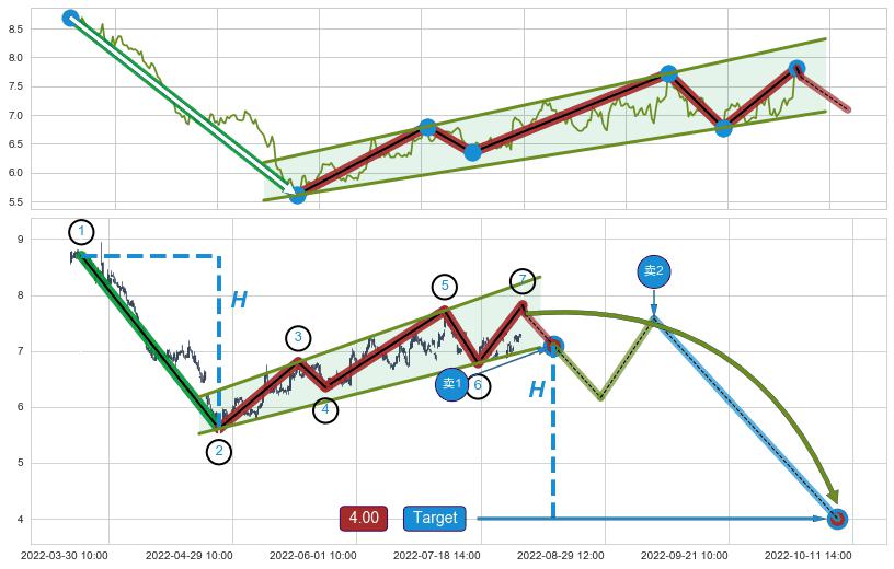 ➣ 最小中继整理跌幅→𝐇: 3.090 (𝐇旗杆的长度:旗杆起点→顶点)