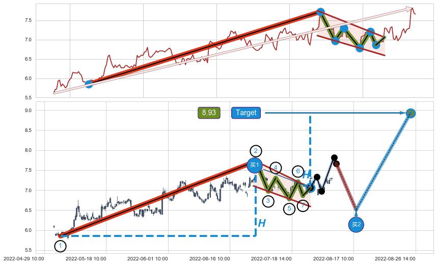 ➣ 最小中继整理涨幅→𝐇: 1.8700 (𝐇旗杆的长度:旗杆起点→顶点)