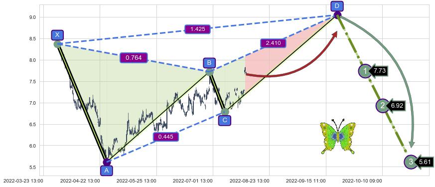 ➣ D点拟合预测价格9.05,距离最后交易收盘价格7.66相差 +18.09%
