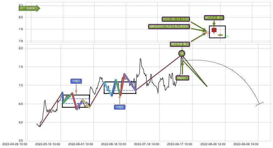 ➢ 2022-08-12 13:00形成:向下跳空【突破】缺口