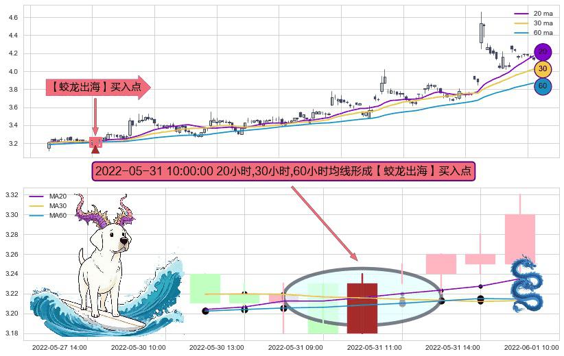 ⚀ 2022-05-31 10:00:00小时显现 20小时-30小时-60小时均线 【蛟龙出海】买入点 看多信号,后市看涨,买入