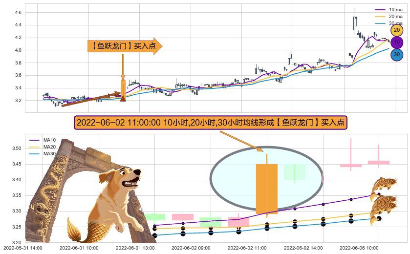 ⚀ 2022-06-02 11:00:00小时显现 10小时-20小时-30小时均线 【鱼跃龙门】买入点 看多信号,后市看涨,买入
