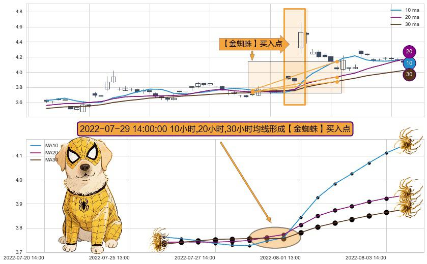 ⚀ 2022-07-29 14:00:00小时显现 10小时-20小时-30小时均线 【金蜘蛛】买入点 看多信号,后市看涨,买入