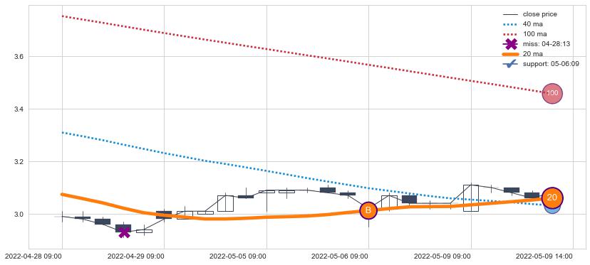⚂ 2022-06-09 13:00:00-小时均线向下破位,2022-06-14 13:00:00-小时重新上穿突破均线,均线支撑再次生效