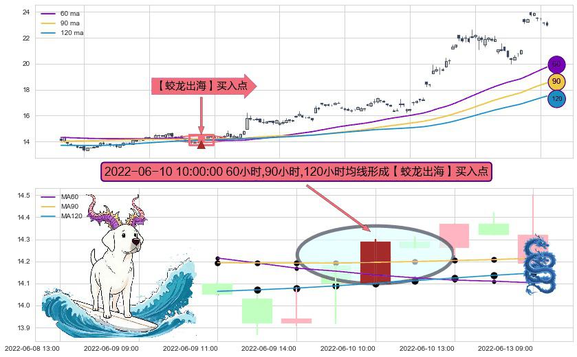 ⚀ 2022-06-10 10:00:00小时显现 60小时-90小时-120小时均线 【蛟龙出海】买入点 看多信号,后市看涨,买入
