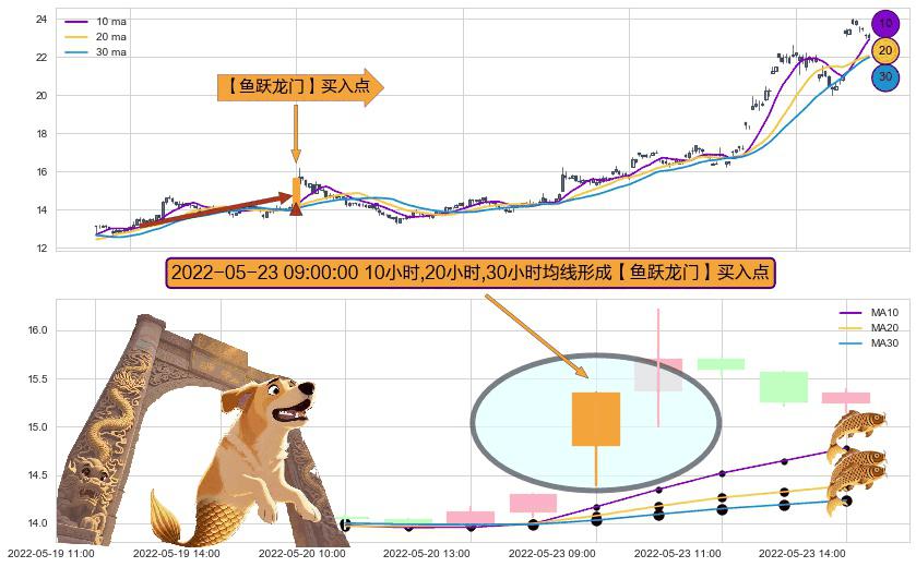 ⚀ 2022-05-23 09:00:00小时显现 10小时-20小时-30小时均线 【鱼跃龙门】买入点 看多信号,后市看涨,买入