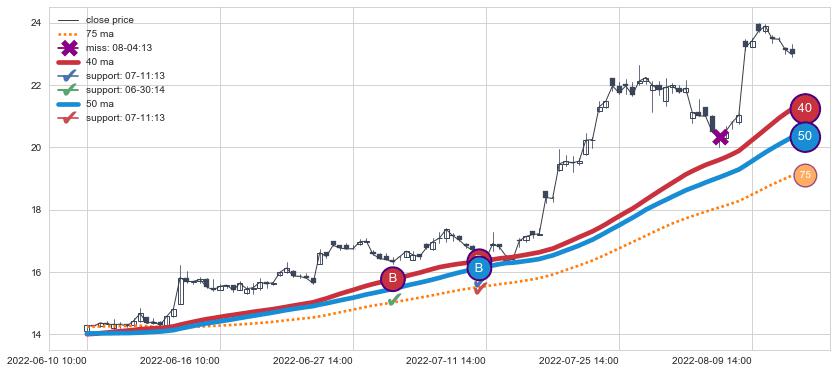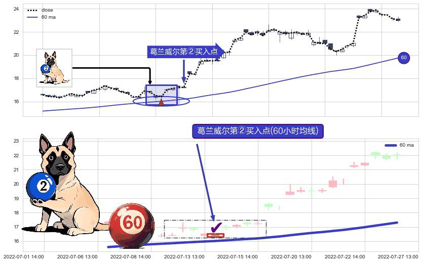 ⚀ 2022-07-13 14:00:00-小时显现 葛兰威尔均线 60小时均线 第②买入点 上升趋势的中继信号,后市看涨,买进信号