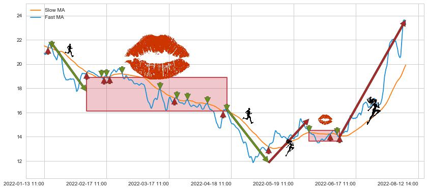 01-17 14:00至02-09 09:00 慢线与快线呈空头排列, 慢线与快线接触少,无缠绕