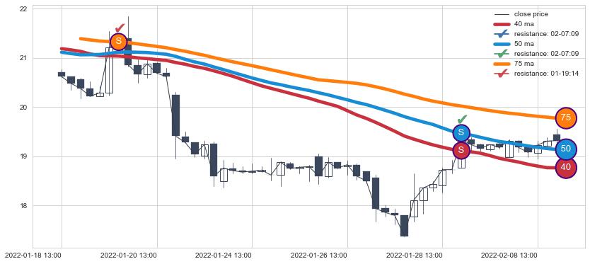 ⚂ 2022-05-30 09:00:00-小时均线向下破位,2022-06-10 10:00:00-小时重新上穿突破均线,均线支撑再次生效