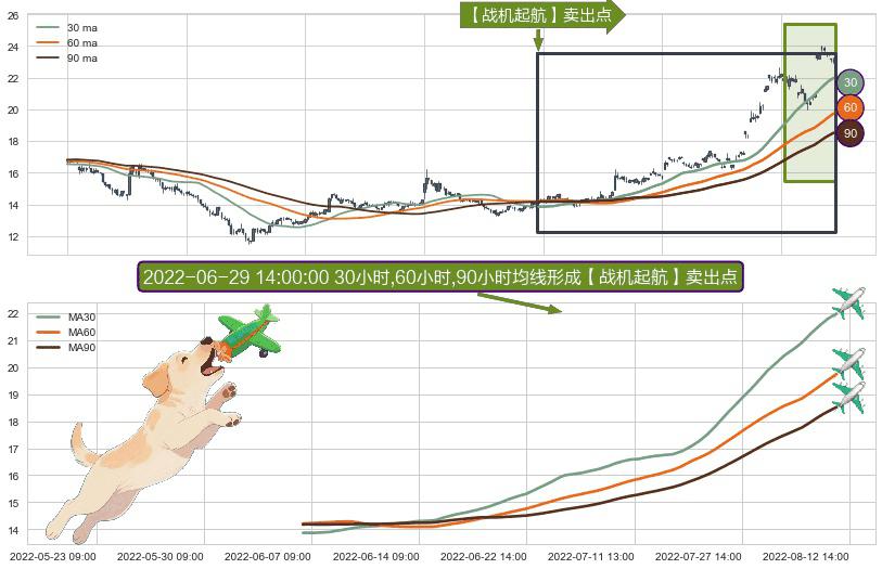 ⚀ 2022-06-06 13:00:00小时-2022-08-12 14:00:00小时显现 30小时-60小时-90小时均线 【战机起航】卖出点 看空信号,后市看跌,卖出