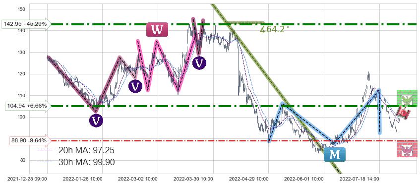 ♞ 20小时均线:97.25,30小时均线:99.90→ 快线<慢线