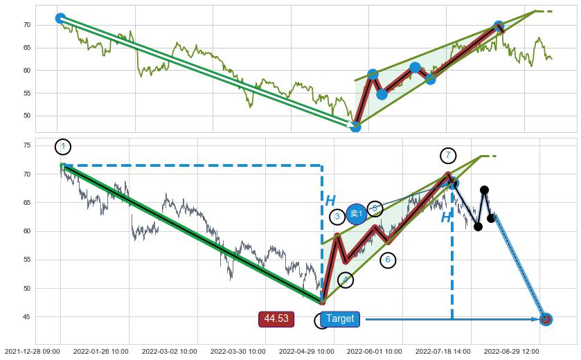 ♘ 阻力价格位69.16,可信任强度95.01%,距离最后交易2022-08-12 14:00形成的收盘价格62.50相差 +10.65%