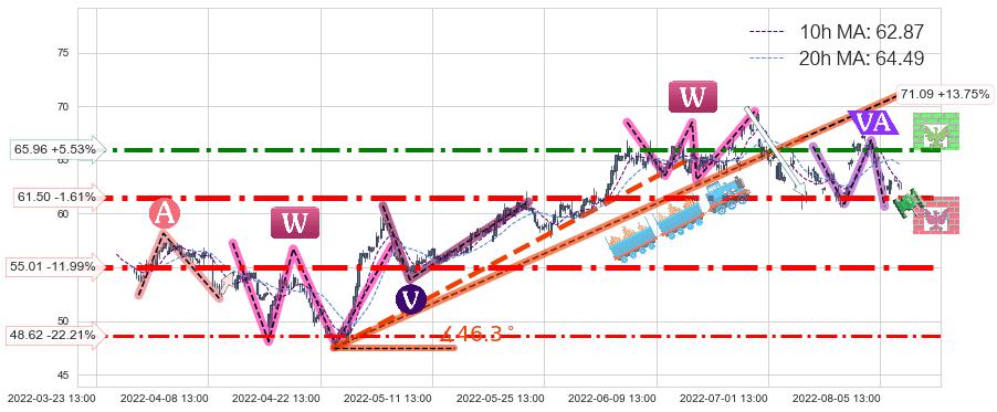♘ 支撑价格位61.50,可信任强度89.90%,距离最后交易2022-08-12 14:00形成的收盘价格62.50相差 -1.61%