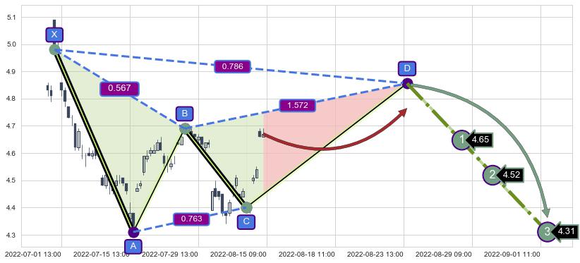 ➣ 未完成【伽利】形态起点X: 06-30:13, 已到达C点: 08-10:13, 预测最终D点: 08-23:14, 共104交易小时