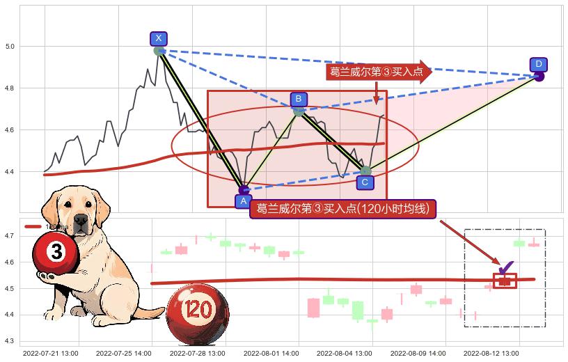 ➣ D点拟合预测价格4.86,距离最后交易收盘价格4.67相差 +3.98%