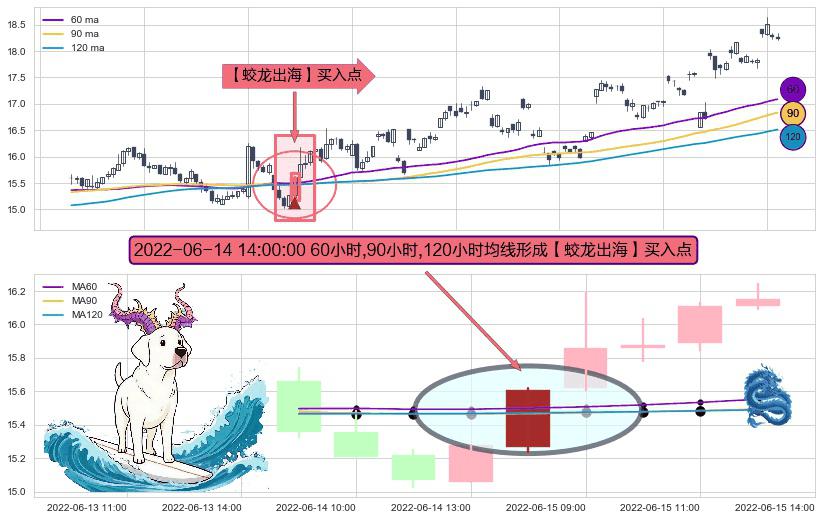 形态多维评估: ⚀ 2022-06-14 14:00:00小时显现 60小时-90小时-120小时均线 【蛟龙出海】买入点 看多信号,后市看涨,买入