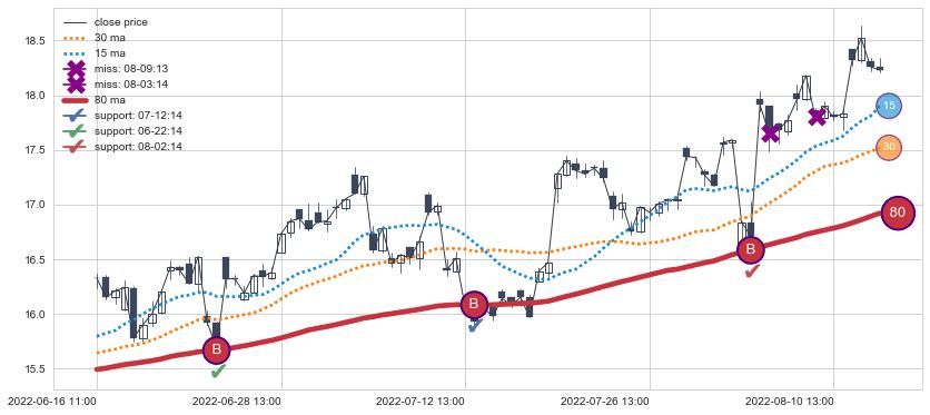 上涨趋势06-16 11:00-08-12 14:00,均线80确认关键支撑3处