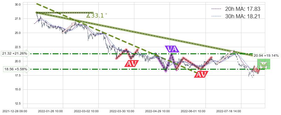 ♘ 阻力价格位21.32,可信任强度69.45%,距离最后交易2022-08-12 14:00形成的收盘价格17.58相差 +21.26%