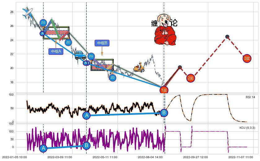 | 7 🅚:【蛟龙出海】买入点 ➕ ☯️:缠论买卖点下降缠中枢AB形成后猜想拐点1买已到达,猜想后续持续拉升(均值回复) ☞ 看多信号 ⇥ 【均线】交织【图形】⇥ 综合量化分数: 55 | > |