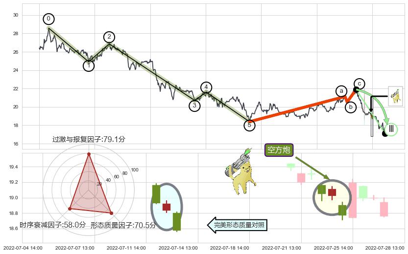 | 5 🅚:【乌云密布】卖出点 ➕ 🌊:波浪理论下跌5浪延续:猜想C点强阻力小反弹终止,猜想保持下跌5浪方向下行(均值回复后大周期继续趋势跟踪) ☞ 看空信号 ⇥ 【均线】交织【图形】⇥ 综合量化分数: 15 | > |