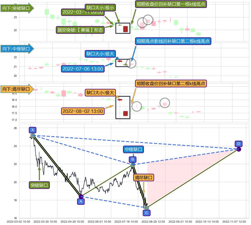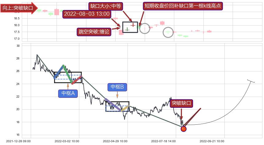 ➢ 2022-08-02 13:00形成:向下跳空【竭尽】缺口
