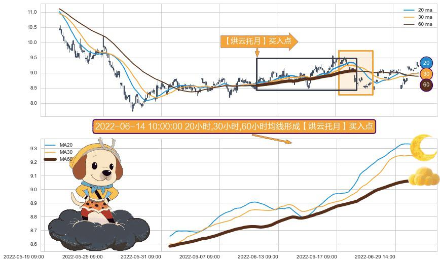 ⚀ 2022-05-31 13:00:00小时-2022-07-05 14:00:00小时显现 20小时-30小时-60小时均线 【烘云托月】买入点 看多信号,后市看涨,买入