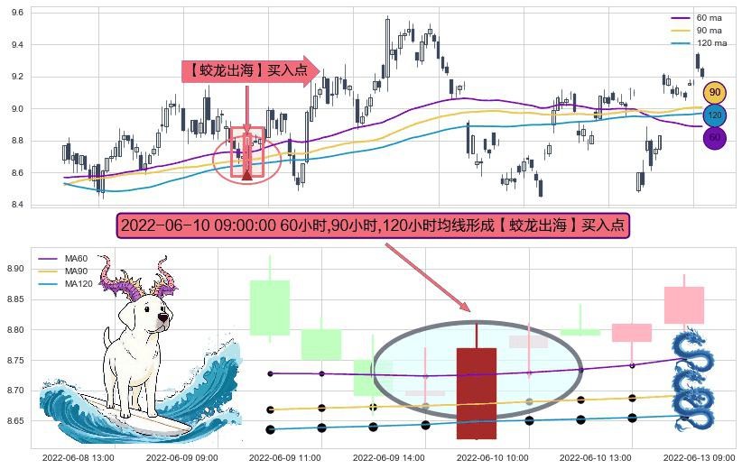 ⚀ 2022-06-10 09:00:00小时显现 60小时-90小时-120小时均线 【蛟龙出海】买入点 看多信号,后市看涨,买入