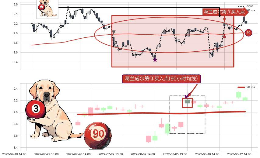 ⚀ 2022-08-05 13:00:00-小时显现 葛兰威尔均线 90小时均线 第③买入点 上升趋势的中继信号,后市看涨,买进信号