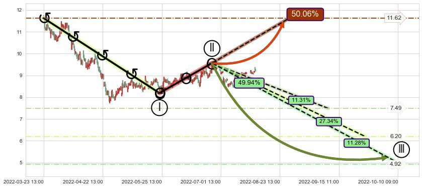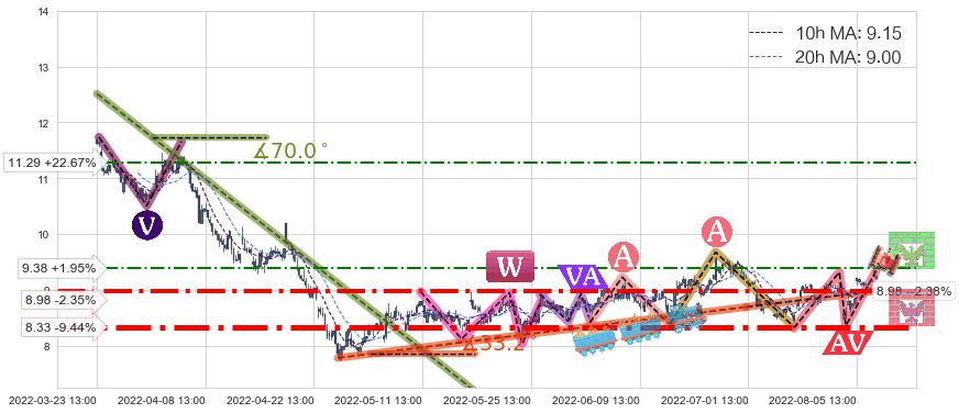 ♘ 支撑价格位8.33,可信任强度99.00%,距离最后交易2022-08-12 14:00形成的收盘价格9.20相差 -9.44%