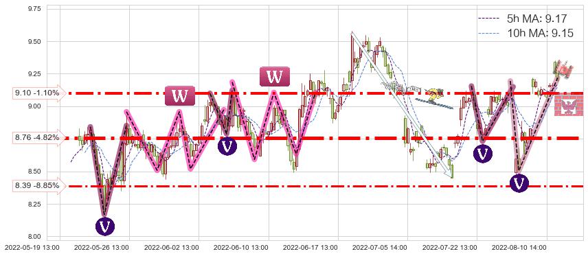 ♞ 5小时均线:9.17,10小时均线:9.15→ 快线>慢线