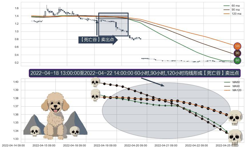 ⚀ 2022-04-18 14:00:00-小时至2022-04-22 14:00:00-小时显现 60小时-90小时-120小时均线 【死亡谷】卖出点 看空信号,后市看跌,卖出