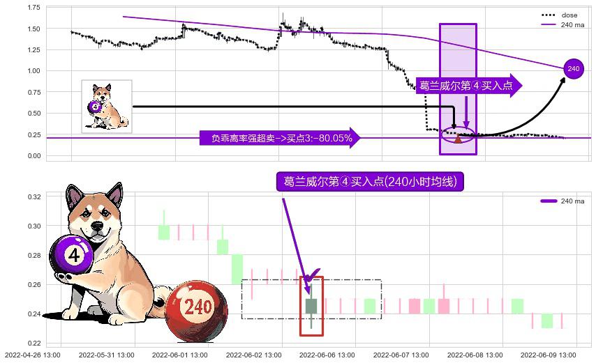 ⚀ 2022-06-06 09:00:00-小时显现 葛兰威尔均线 240小时均线 第④买入点 下降趋势均值回复的短线反弹信号,后市看涨,买进信号