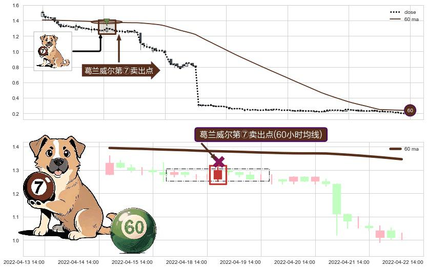 ⚀ 2022-04-19 09:00:00-小时显现 葛兰威尔均线 60小时均线 第⑦卖出点 下降趋势的中继信号,后市看跌,卖出信号