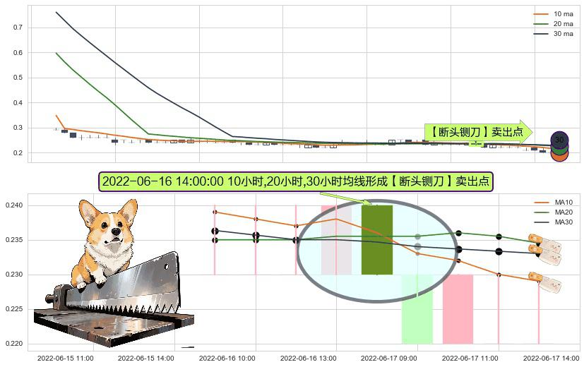 ⚀ 2022-06-16 14:00:00小时显现 10小时-20小时-30小时均线 【断头铡刀】卖出点 看空信号,后市看跌,卖出