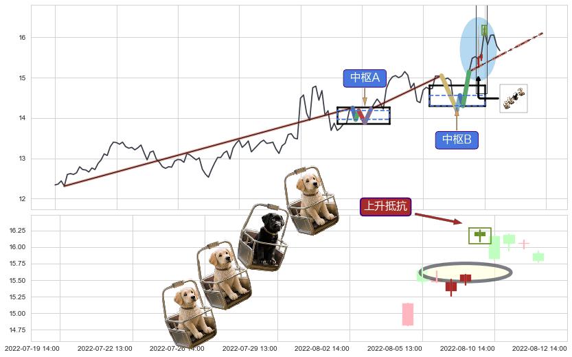 从2022-08-02 14:00至2022-08-12 14:00,共包含15个小时,阶段股价上涨10.21%,阶段股价变动位移路程比: 1 : 2