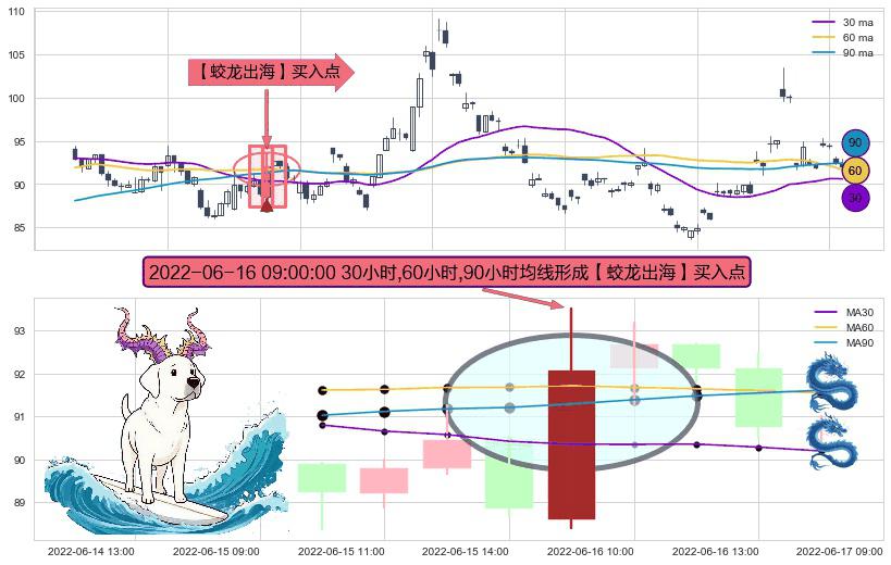 ⚀ 2022-06-16 09:00:00小时显现 30小时-60小时-90小时均线 【蛟龙出海】买入点 看多信号,后市看涨,买入
