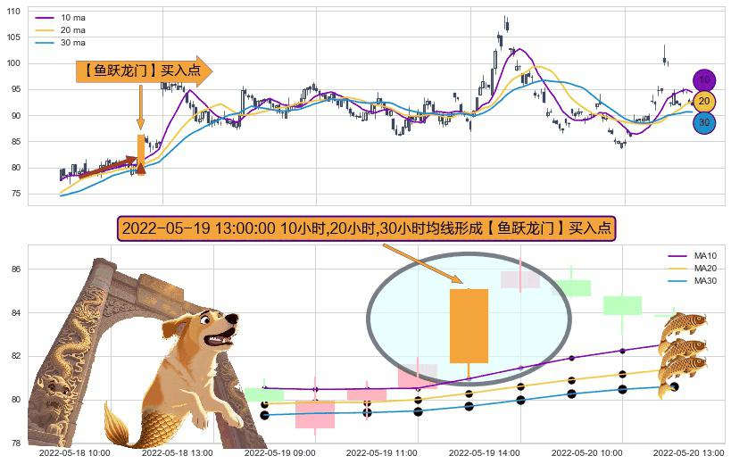 ⚀ 2022-05-19 13:00:00小时显现 10小时-20小时-30小时均线 【鱼跃龙门】买入点 看多信号,后市看涨,买入