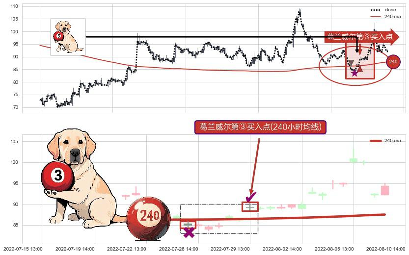 ⚀ 2022-07-29 13:00:00-小时显现 葛兰威尔均线 240小时均线 第③买入点 上升趋势的中继信号,后市看涨,买进信号