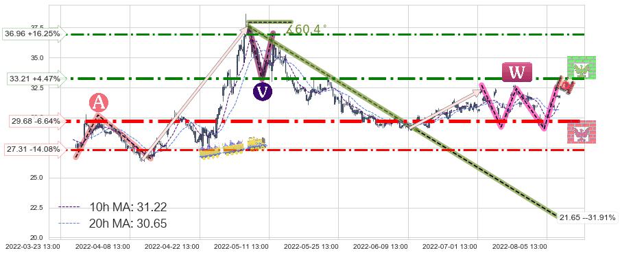 ♘ 阻力价格位33.21,可信任强度81.10%,距离最后交易2022-08-12 14:00形成的收盘价格31.79相差 +4.47%
